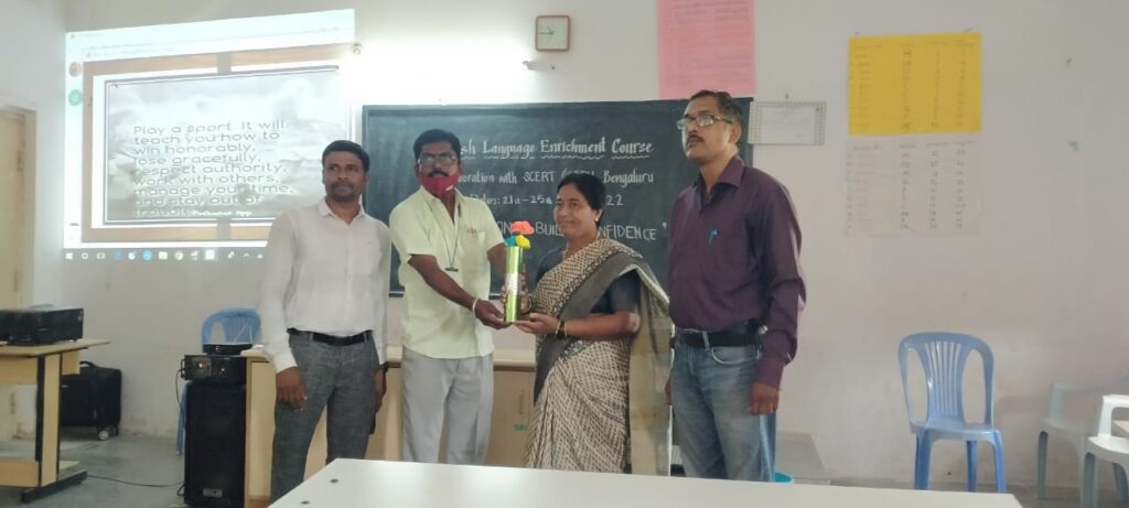 ధర్మపురి పట్టణంలో కొనసాగుతున్న ఉపాధ్యాయ శిక్షణ తరగతులను మున్సిపల్ చైర్ పర్సన్ సంఘ సత్యము శుక్రవారం సందర్శించారు. ఉపాధ్యాయుల్లో ఆంగ్లమాధ్యమ బోధనా సామర్థ్యాన్ని పెంపొందించడానికి విద్యాశాఖ ధర్మపురి బాలికల ఉన్నత పాఠశాల్లో నిర్వహిస్తున్న ఆంగ్ల భాషాభివృద్ధి శిక్షణా ఉపాధ్యాయులతో మాట్లాడారు . వచ్చే విద్యాసంవత్సరం నుండి ప్రభుత్వం ప్రతిష్టాత్మకంగా ప్రారంభిస్తున్న ఆంగ్ల మాధ్యమ పాఠశాలల్లో ఉపాధ్యాయులు చక్కటి విద్యను అందించడం ద్వార విద్యార్థుల సంఖ్యను పెంచడానికి కృషి చేయాలని ఆమె కోరారు . ఈ కార్యక్రమంలో పాఠశాల ప్రధానోపాధ్యాయులు చెరుకు రాజన్న పాల్గొన్నారు .