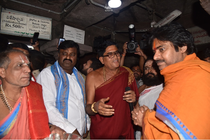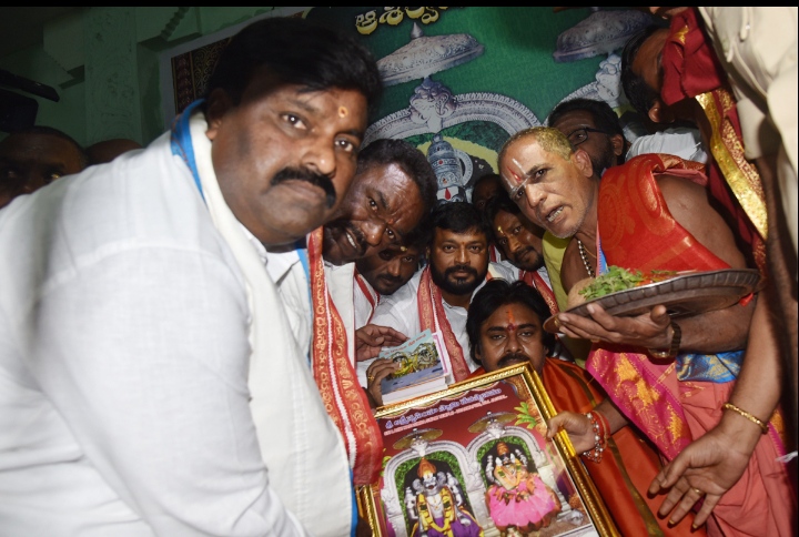 యోగా నరసింహస్వామి దర్శించుకున్న పవన్ కళ్యాణ్ కు ఆశీర్వాదం మండపంలో ఆలయ పక్షాన స్వామివారి శేష వస్త్రం, స్వామి చిత్రపటాన్ని, ప్రసాదం అందించారు.