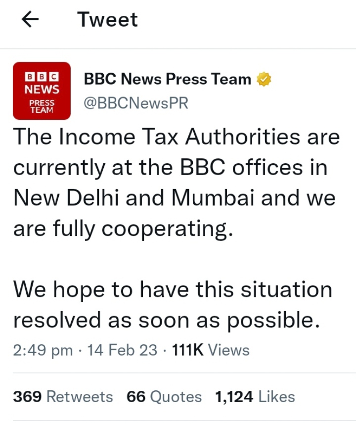 ‘‘ఆదాయపు పన్ను అధికారులకు పూర్తిగా సహకరిస్తున్నాం. ఈ అంశం వీలైనంత త్వరలోనే పరిష్కారం అవుతుందని మేం ఆశిస్తున్నాం’’ అని బీబీసీ న్యూస్ ఒక ప్రకటనలో తెలిపింది.