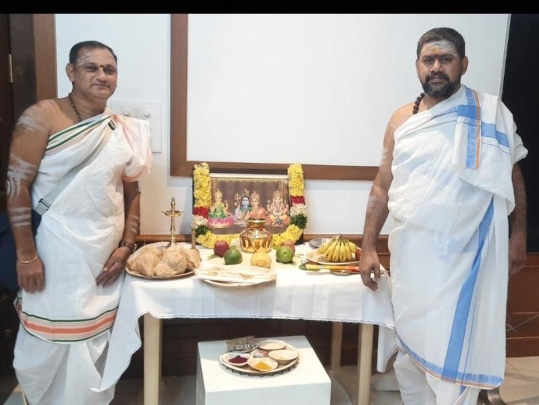 వేద పండితులు నిర్వహించిన ముహూర్తం, పూజ సాంప్రదాయాలను, హోమాలు యాగాలు ప్రాంగణంలో వేద పండితులను నిర్వహించారు.