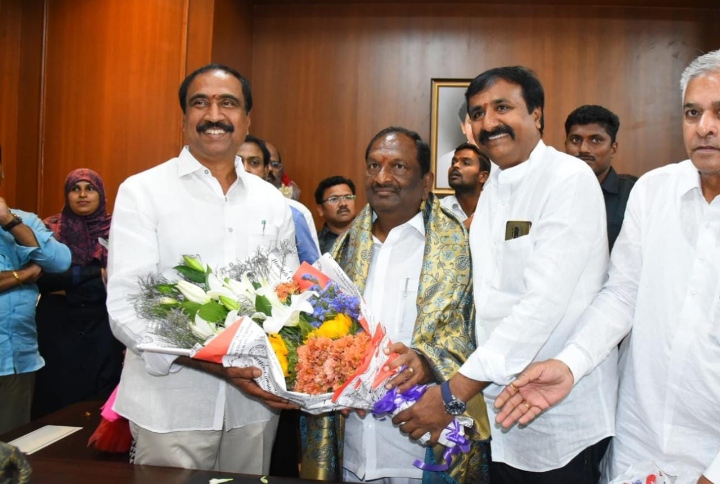 సంక్షేమ శాఖా మంత్రి కొప్పుల ఈశ్వర్ చాంబర్ లో ధర్మపురి వేద పండితులు పూజలు!
