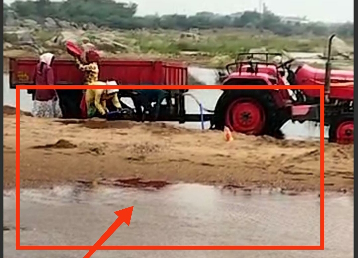 గతంలో నదిలో గల రక్షిత నీటి బావి కింది వైపు ట్రాక్టర్లలో ఇసుక తరలించేవారు. ప్రస్తుతం భక్తులు పవిత్ర స్నానాలు ఆచరించే తీర ప్రాంతం వెళ్లే దారిలో ఇసుక. తవ్వడంతో 5 ఫీట్లు 4 పిట్ట్ల గుంతలు ఏర్పడుతున్నాయి. వర్ష ప్రభావం, నది నీటిమట్టం పెరిగిన, ఇసుక గుంతలలో నీరు నిండి అవకాశం ఉంది, యాత్రికులకు తెలియక, ఆగుపించక అందులో పడి ప్రమాదాల బారిన పడే దుస్థితి ఏర్పడింది.