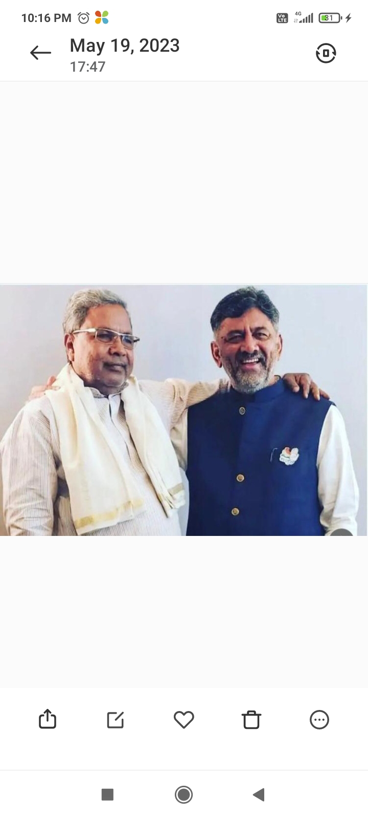 కర్ణాటక ముఖ్యమంత్రిగా సిద్ధరామయ్య, ఉప ముఖ్యమంత్రిగా, డీకే శివకుమార్ శనివారం ప్రమాణ స్వీకారం చేయనున్నారు. మధ్యాహ్నం 12.30 గం.కు బెంగళూరులోని కంటిరవ స్టేడియంలో కర్ణాటక గవర్నర్ థావర్చంద్ గెహ్లాట్ వారితో ప్రమాణ స్వీకారం చేయించనున్నారు..