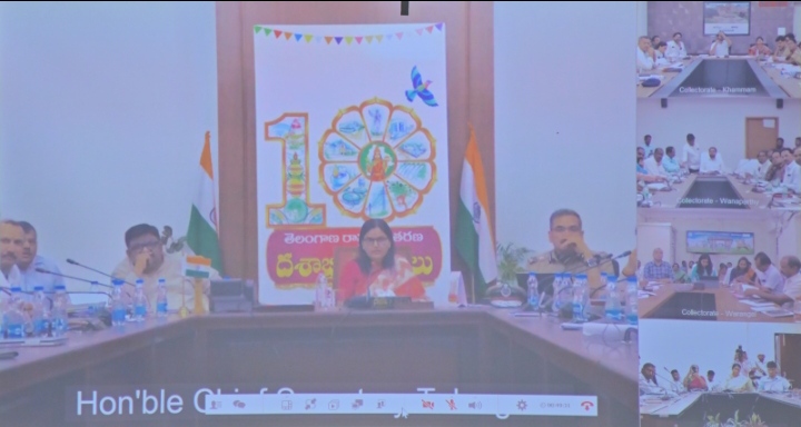 సోమవారం హైదరాబాద్ నుండి ప్రభుత్వ ప్రధాన కార్యదర్శి శాంతి కుమారి రాష్ట్ర ఉన్నత స్థాయి అధికారులతో కలిసి రాష్ట్ర అవతరణ దశాబ్ది ఉత్సవాల ఏర్పాట్లపై జిల్లా కలెక్టర్ లతో వీడియో సమావేశం ద్వారా సమీక్షించారు. సమీకృత జిల్లా కలెక్టరేట్ సమావేశ మందిరం నుండి జిల్లా కలెక్టర్, ఎస్పీ భాస్కర్ అదన కలెక్టర్లు బిఎస్ లతా మంద మకరంద జిల్లా అధికారులు ఈ వీడియో సమావేశంలో పాల్గొన్నారు.
