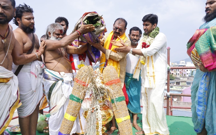 తిరుపతి లోని శ్రీ తాతయ్య గుంట గంగమ్మ తల్లి విగ్రహ పున: ప్రతిష్ట మహా కుంభాబిషేకం కార్యక్రమంలో భాగంగా శుక్రవారం ఉదయం శ్రీ తాతయ్య గుంట గంగమ్మ ఆలయం చేరుకున్న కంచి కామకోటి పీఠాధిపతి శ్రీశ్రీశ్రీ విజేయేంద్ర సరస్వతి స్వామి వారికి, రాష్ట్ర పర్యాటక శాఖ మంత్రి శ్రీమతి ఆర్. కె.రోజా, స్థానిక ఎమ్మెల్యే భూమన కరుణాకర్ రెడ్డి, ఆలయ మర్యాదలతో సాంప్రదాయ బద్దంగా స్వాగతం పలికారు.