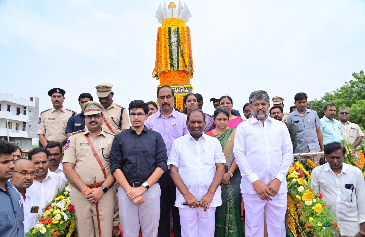జిల్లా కలెక్టర్ షేక్ యాస్మిన్ బాషా మాట్లాడుతూ, అమరవీరులకు నివాళులు అర్పించడం, వారి త్యాగాలను ఈ సందర్భంగా గుర్తు చేసుకోవాలని అన్నారు. వారి కుటుంబాలను ప్రభుత్వం ఆర్థికంగా ఆడుకోవడం జరిగిందని తెలిపారు. 21 రోజుల పాటు దశాబ్ది ఉత్సవాలను జరుపుకోవడం జరిగిందని తెలిపారు.