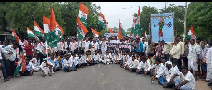 ఎమ్మెల్సీ జీవన్ రెడ్డి స్వగృహం ఇందిరా భవన్ నుండి కాంగ్రెస్ జెండాలు పట్టుకొని శ్రేణులు ర్యాలీగా స్థానిక తహసీల్ చౌరస్తా, అంబేద్కర్ విగ్రహం వద్ద ధర్నా చేపట్టిన కాంగ్రెస్ శ్రేణులు, రోడ్డుపై బైఠాయించి నిరసన తెలిపారు.