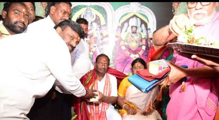 ఆలయ అధికారులు అర్చకులు వేద పండితులు మంత్రి దంపతులకు మంగళ వాయిద్యాలు పూర్ణకుంభతో స్వాగతించారు. అనంతరం ఆశీర్వచనం మండలం స్వామివారి ప్రసాదం శేష వస్త్రాన్ని మంత్రి దంపతులకు అందించి ఘనంగా ఆశీర్వదించారు.
