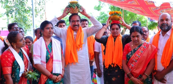 బోనాలు ఎత్తుకున్న ఎమ్మెల్యే సంజయ్, జడ్పి చైర్మన్ వసంత !