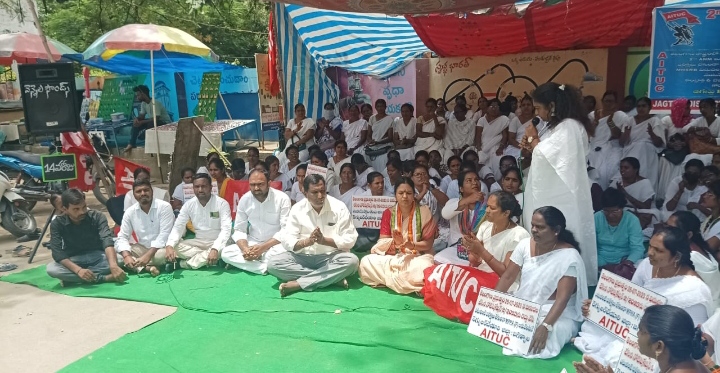 జగిత్యాల జిల్లా కేంద్రంలోని స్థానిక తహసిల్ చౌరస్తా వద్ద AITUC ఆద్వర్యంలో ANM, ఉద్యోగస్తులు చేపట్టిన నిరవధిక సమ్మెలో మంగళవారం అడ్లూరి లక్ష్మణ్ కుమార్, తాటిపర్తి విజయ లక్ష్మి , పాల్గొని తమ సంఘీభావాన్ని తెలిజేశారు. ఈ సందర్భంగా వారు మాట్లాడుతూ.
