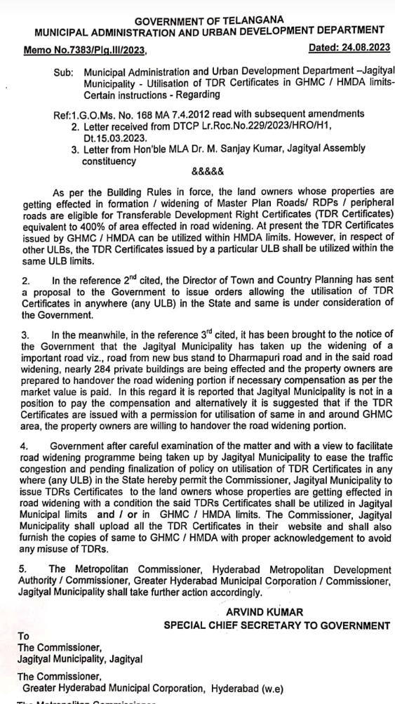 ఈ పత్యేక జీఓ ను కేవలం జగిత్యాల పట్టణానికే ప్రభుత్వం జారీ చేసిందని ఎమ్మెల్యే డా. సంజయ్ కుమార్ పేర్కొన్నారు