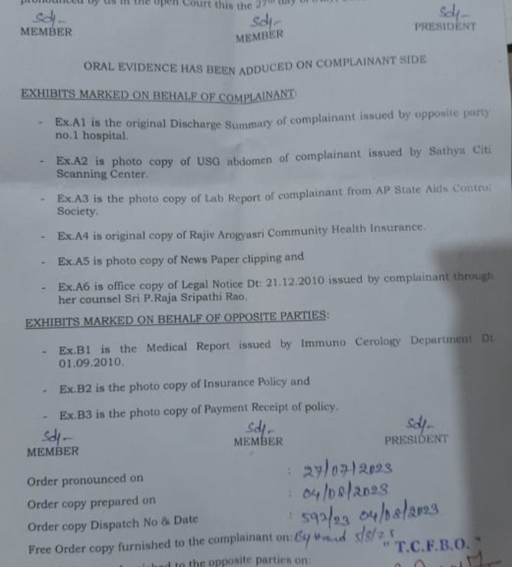 కేసు పూర్వపరాలు, వాదనలు పరిశీలించిన వినియోగదారుల ఫోరం ఆస్పత్రి యాజమాన్యం, బాధితుడికి ₹ 2 లక్షల రూపాయల జరిమానాను తేది 22-11-2011 నుండి 9% వడ్డీతో కలిపి చెల్లించాలని, ఖర్చుల నిమిత్తం మరో ₹ 5 వేలు ఇవ్వాలని ఫోరం అధ్యక్షురాలు K. స్వరూపారాణి, సభ్యులు S. శ్రీలత , V. నరసింహారావు ఆదేశిస్తూ తీర్పునిచ్చారు.