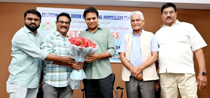 2023 శాసన సభ ఎన్నికలను పురస్కరించుకొని ఆయా ప్రధాన రాజకీయ పార్టీల ముఖ్య బాధ్యులతో తెలంగాణ రాష్ట్ర వర్కింగ్ జర్నలిస్టుల సంఘం (టీయూడబ్ల్యూజే) మీట్-ది-ప్రెస్ కార్యక్రమానికి శ్రీకారం చుట్టింది. ఇందులో భాగంగా ఇవ్వాళ బషీర్ బాగ్ లోని యూనియన్ కార్యాలయంలో రాష్ట్ర మంత్రి, భారత్ రాష్ట్ర సమితి (బీఆర్ఎస్) పార్టీ వర్కింగ్ ప్రెసిడెంట్ కేటీఆర్ తో ఈ కార్యక్రమం ప్రారంభమైంది.