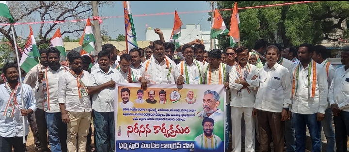 కోరుతూ సోమవారం ధర్మపురి తహసిల్దార్ కార్యాలయం ఎదుట కాంగ్రెస్ శ్రేణులతో లక్ష్మణ్ కుమార్ ధర్నా నిర్వహించి. తాసిల్దార్ కు వినతి పత్రం ఇచ్చారు. ఈ సందర్భంగా లక్ష్మణ్ కుమార్ ప్రభుత్వంపై పలు ఆరోపణలు చేశారు.
