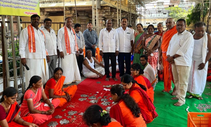 శుక్రవారం దేవాలయ ప్రాంగణంలో నిఘా నీడలో హుండీ లెక్కింపు కార్యక్రమం జరిగింది.