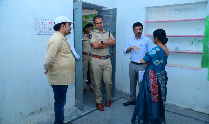 ఆయా స్ట్రాంగ్ రూంలలో అవసరమైన పనులు చేపట్టాలని, స్ట్రాంగ్ రూం ల ముందు సిసి కెమెరాలు, విద్యుత్ లైట్స్, తదితర ఏర్పాట్లు చేపట్టాలని తెలిపారు. అవసరమైన బారికేడింగ్ చేయించాలని అన్నారు. స్ట్రాంగ్ రూం లకు అవసరమైన పోలీసు బందోబస్తు ఏర్పాటు చేయడం జరుగుతుందని తెలిపారు. ఈ కార్యక్రమంలో ఎస్పీ సన్ ప్రీత్ సింగ్, అదనపు కలెక్టర్లు బి.ఎస్. లత, దివాకర, ఆర్డీవోలు నరసింహ మూర్తి, రాజేశ్వర్, పోలీసు, రెవిన్యూ, పంచాయతీ రాజ్, రోడ్లు భవనాల శాఖ ఇంజనీర్లు, మునిసిపల్ కమిషనర్ లు, ఇతర అధికారులు, తదితరులు పాల్గొన్నారు.