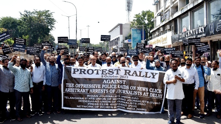 దేశ రాజధాని ఢిల్లీలో మీడియా సంస్థలపై, జర్నలిస్టులపై జరిగిన దాడులను గర్హిస్తూ హైదరాబాదులో ఇండియన్ జర్నలిస్ట్ యూనియన్, టీయూడబ్ల్యూజే దాని అనుబంధ సంఘాల ఆధ్వర్యంలో గురువారం నాడు భారీ ర్యాలీ జరిగింది. అనంతరం ట్యాంక్ బండ్ లోని అంబేద్కర్ సర్కిల్ లో ఐజేయూ అధ్యక్షుడు కే.శ్రీనివాస్ రెడ్డి అధ్యక్షతన జరిగిన సభలో వక్తలు మాట్లాడుతూ కేంద్ర ప్రభుత్వ నియంతృత్వ వైఖరిని ముక్తకంఠంతో ఖండించారు.