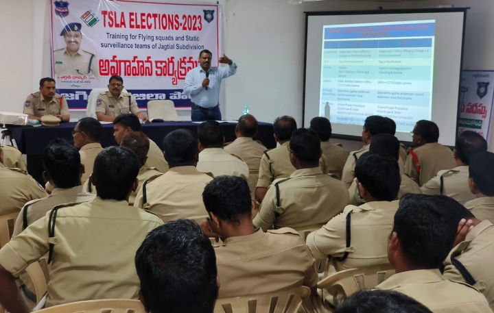 జగిత్యాల జిల్లా ఎస్పీ ఎగ్గడి భాస్కర్ ఆదేశాల మేరకు గురువారం జిల్లా పోలీస్ ప్రధాన కార్యాలయం లొ రాబోవు రాష్ట్ర శాసనసభ ఎన్నికల నియమావళి, ఎన్నికలకు సంబంధించి పోలీస్ అధికారులు తీసుకోవలసిన చర్యలపై మాస్టర్ ట్రైనర్ పడల తిరుపతి అసిస్టెంట్ ప్రొఫెసర్ శిక్షణ కార్యక్రమం నిర్వహించారు.