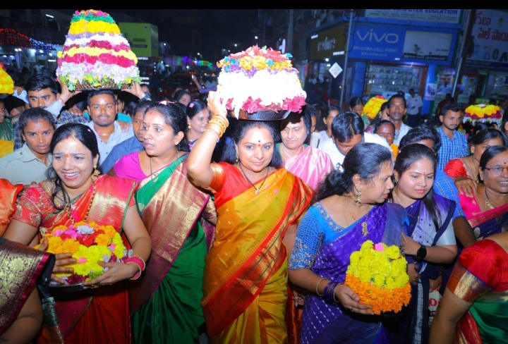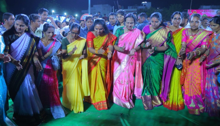 భారత జాగృతి ఆధ్వర్యంలో మంగళవారం వివేకానంద మినీ స్టేడియం లో నిర్వహించిన మహా బతుకమ్మ సంబరాల్లో పాల్గొన్న జాగృతి అధ్యక్షురాలు, ఎమ్మెల్సీ కల్వకుంట్ల కవిత, ఎమ్మేల్యే డా.సంజయ్ కుమార్, జెడ్పీ చైర్మన్ దావా వసంత సురేష్, మున్సిపల్ చైర్మన్ గోలి శ్రీనివాస్ తదితరులు పాల్గొన్నారు.