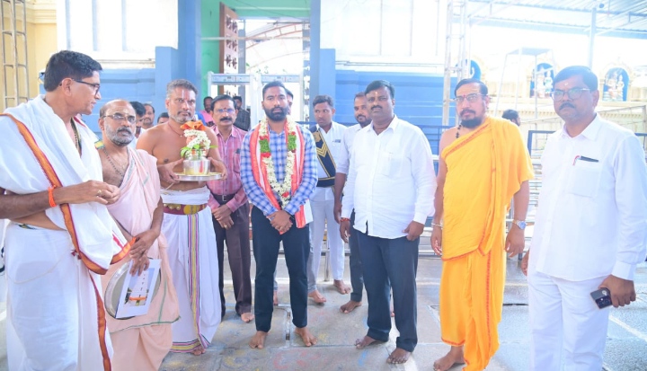 ధర్మపురి శ్రీ లక్ష్మీ నరసింహ స్వామినీ జగిత్యాల జిల్లా కలెక్టర్ .సత్యప్రసాద్ శుక్రవారం దర్శించుకుని ప్రత్యేక పూజలు చేశారు. దేవస్థాన సాంప్రదాయం ప్రకారం అధికారులు, అర్చకులు, వేద పండితులు మేళతాళాలతో పూర్ణకుంభంతో కలెక్టర్ ను స్వాగతించారు.