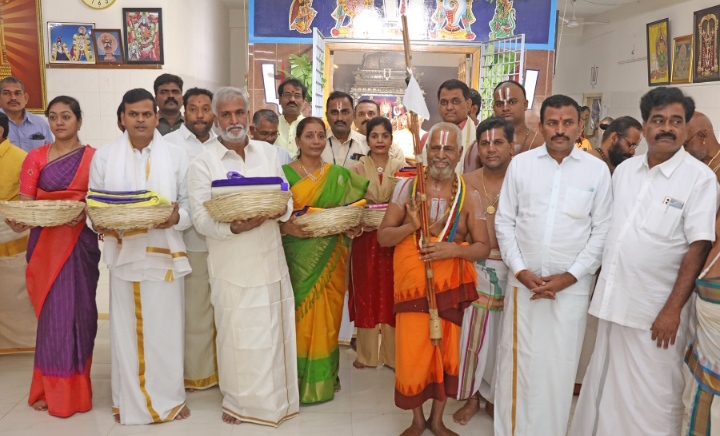 పవిత్రమైన సందర్భంగా, సంప్రదాయాన్ని అనుసరించి, తమిళనాడులోని శ్రీ రంగం ఆలయం నుండి శ్రీ వేంకటేశ్వర స్వామికి ప్రత్యేక వస్త్రాలను సమర్పించారు. తిరుమలలోని శ్రీ పెద్ద జీయర్ మఠం వద్ద ప్రారంభమైన శోభాయాత్రలో తమిళనాడు దేవాదాయ శాఖ మంత్రి శేఖర్ బాబు, దేవాదాయ శాఖ స్పెషల్ కమిషనర్ కుమార గురుబాలన్, జాయింట్ కమిషనర్ రంగం మరియప్పన్ పట్టువస్త్రాలు సమర్పించారు