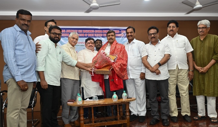 కె.శ్రీనివాస్ రెడ్డి , టియుడబ్ల్యూజే రాష్ట్ర అధ్యక్షుడుగా బాధ్యతలు చేపట్టిన కె.విరాహత్ అలీలతో పాటు, టీయుడబ్ల్యూజే కార్యదర్శి వి.యాదగిరి , కోశాధికారి వెంకట్ రెడ్డి , కార్యదర్శి శ్రీకాంత్ రెడ్డి , హౌసింగ్ సొసైటీ అధ్యక్షుడు బొమ్మగాని కిరణ్ కుమార్ , టియుడబ్ల్యూజే కార్యవర్గ సభ్యులు ఏ.రాజేష్ , అనిల్ , గౌస్ మోహినుద్దీన్ తదితరులను మంత్రి పొన్నం సన్మానించి , శుభాకాంక్షలు తెలిపారు