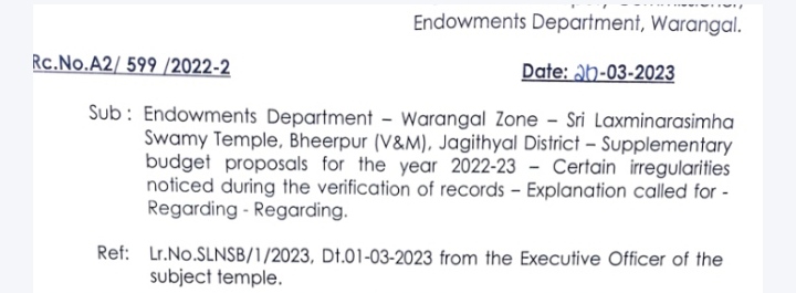 ఇందుకు అనేక కారణలతో పాటు గత సంవత్సరం లో వరంగల్ దేవాదాయ శాఖ డిప్యూటీ కమిషనర్ శ్రీకాంత్ రావు, సిబ్బందితో ఈ ఆలయంలో 4/10/2023 న ఆకస్మిక తనిఖీలు చేపట్టారు. ఈ తనిఖీలలో పలు అవినీతి, అక్రమాలు, అవకతవకల తో పాటు లక్షలాది రూపాయల విలువ గల దిట్టం లో (ప్రసాదాలు, ఉచిత అన్నదానం ,స్వామివారి నివేదనకు వినియోగించే నిత్యవసర సరుకులు). అవకతవకలు గుర్తించి ఇక్కడీ అధికారులకు 18-10-2023 న రెండు సంజాయిషి నోటీసులు జారీ చేసి, దాదాపు సంవత్సర కాలం సమీపిస్తున్న బాధ్యులైన అధికారి, ఉద్యోగులపై ఎలాంటి చర్యలు తీసుకోకపోవడం తో ప్రభుత్వ యంత్రాంగమే వీరికి జంకుతున్నట్టు భక్తులలో చర్చ నెలకొంది. దీనికి తోడు 20-03-2023 న బీర్పూర్ ఆలయ నిధులు దుర్వినియోగం పై కూడా సంజాయిషీ నోటీసులు జారీ చేశారు.
