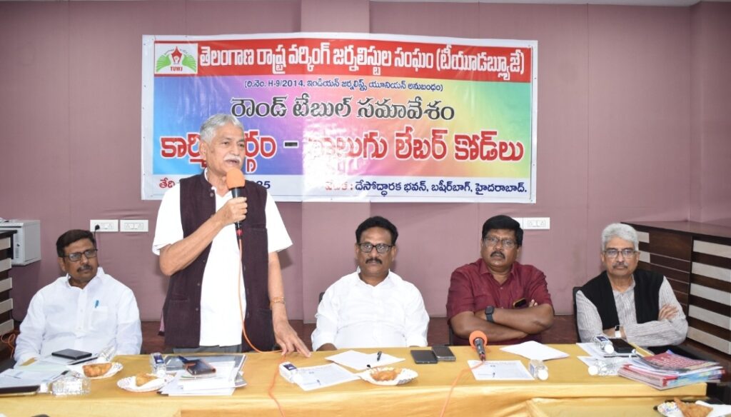 👉 టియుడబ్ల్యుజె రౌండ్ టేబుల్ సమావేశంలో తీర్మానం ! J SURENDER KUMAR, కేంద్ర ప్రభుత్వం అమలులోనికి తీసుకొచ్చిన నూతన ‘లేబర్…