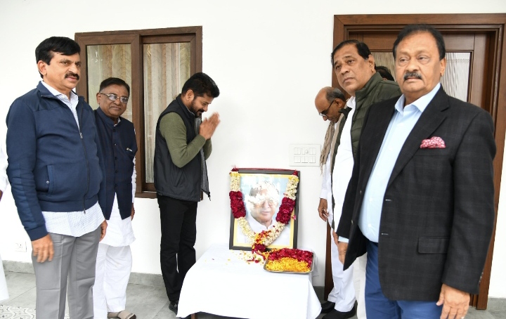 తెలంగాణ రాష్ట్ర సాధనలో కీలక పాత్ర పోషించిన స్వర్గీయ సూదిని జైపాల్ రెడ్డి జయంతి సందర్భంగా ముఖ్యమంత్రి రేవంత్ రెడ్డి ఢిల్లీలోని అధికార నివాసంలో ఆ మహానేత చిత్రపటానికి పుష్పాంజలి ఘటించారు.