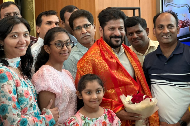 మంత్రి శ్రీధర్ బాబు తో కలిసి సింగపూర్ చేరుకోగానే అక్కడి తెలంగాణ పౌరులు కొందరు ముఖ్యమంత్రి బృందానికి ఘనంగా స్వాగతించి శుభాకాంక్షలు తెలిపారు.