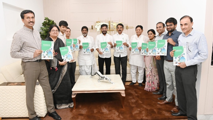👉 ఇంటిగ్రేడెట్ కమాండ్ కంట్రోల్ సెంటర్ (ICCC)లో తెలంగాణ క్లీన్ అండ్ గ్రీన్ ఎనర్జీ పాలసీ-2025 ని ముఖ్యమంత్రి , ఉప ముఖ్యమంత్రి మల్లు భట్టివిక్రమార్క శనివారం ఆవిష్కరించారు. అనంతరం పాలసీపై ఉన్నతాధికారులతో సమీక్షించారు.