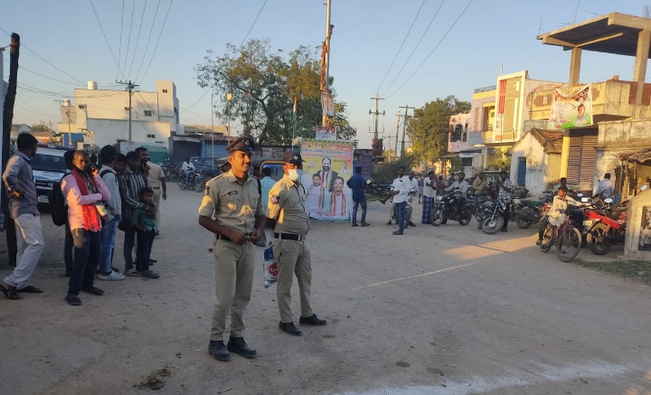 సభా ప్రాంగణానికి దాదాపు అర కిలోమీటర్ దూరం వరకు ద్విచక్ర వాహనాలను సైతం అనుమతించలేదు. బుధవారం తెల్లవారుజాము నుంచే జైన గ్రామం లో సాయుధ పోలీసులు మోహరించారు. ప్రశాంతంగా మంత్రి పర్యటన ముగియడంతో పోలీసు వర్గాలు ఊపిరి పీల్చుకున్నారు.