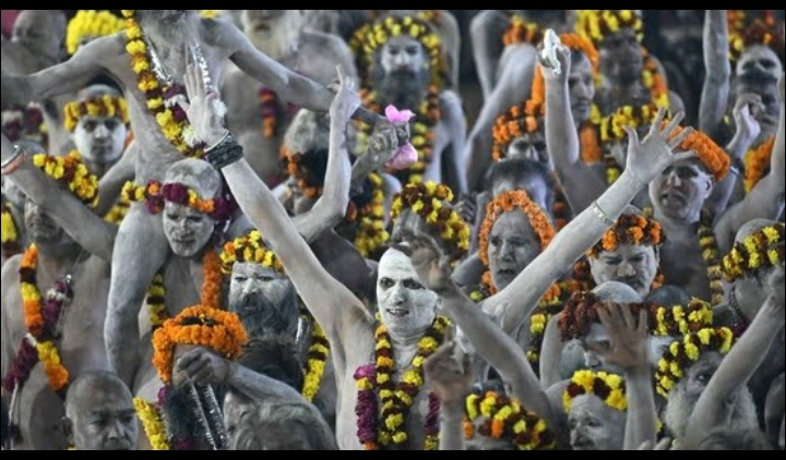 బూడిద పూసుకున్న నాగ సాధువులు లేదా హిందూ పవిత్ర పురుషులు పవిత్ర నదుల సంగమం వద్ద ఆచారబద్ధంగా స్నానాలు చేస్తూ, ఈ కార్యక్రమం యొక్క లోతైన సంప్రదాయాలను నొక్కి చెబుతూ, CNN కవర్ చేసింది .