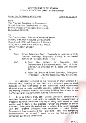 👉 తెలంగాణ ప్రభుత్వ ప్రిన్సిపాల్ సెక్రటరీ లేఖ సంఖ్య 767/Prog.11/A2/2021 – తేదీ 22/08/2024 ద్వారా నవోదయ విద్యాసంస్థ కమిషనర్ ఉత్తరప్రదేశ్ కు లేఖ రాశారు.