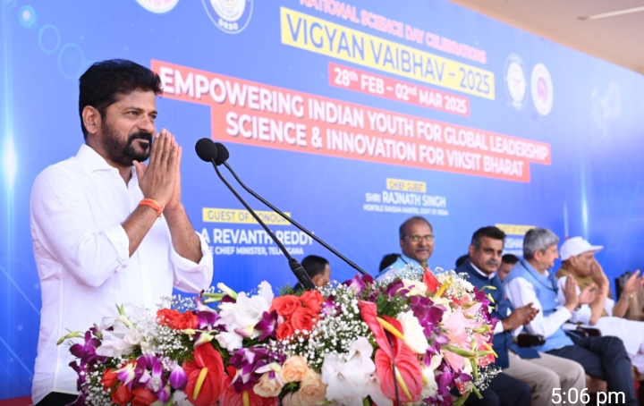 👉 జాతీయ సైన్స్ దినోత్సవం సందర్భంగా శుక్రవారం గచ్చిబౌలి స్టేడియంలో నిర్వహించిన విజ్ఞాన్ వైభవ్- 2025 ప్రదర్శనను రక్షణ మంత్రి రాజ్నాథ్ సింగ్ తో కలిసి ముఖ్యమంత్రి ప్రారంభించారు. సభా ప్రాంగణంలో శాస్త్ర రంగంలో దిగ్గజులైన దివంగత భారతరత్నాలు సీవీ రామన్ , అబ్దుల్ కలాం విగ్రహాలకు పూలమాలలు వేసి నివాళులు అర్పించారు. అనంతరం ప్రసంగిస్తూ ముఖ్యమంత్రి కీలక అంశాలను ప్రస్తావించారు..