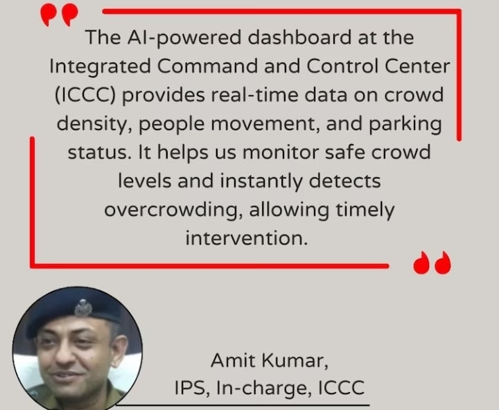 “ఒకటి జనసమూహ సాంద్రత డేటాను , ప మరొక AI మోడల్, ఇది ఘాట్లు మరియు మార్గాల యొక్క వివిధ ఎంట్రీల , ఎగ్జిట్ పాయింట్ల వద్ద ఇన్స్టాల్ చేశారు. ఒకటి ప్రజలు ఘాట్లను చేరుకునే ప్రదేశం, మరొకటి ఏదైనా నిర్దిష్ట సమయంలో ప్రజలు ఇప్పటికే అక్కడ ఉన్న ప్రదేశం. కాబట్టి ఈ రెండు డేటా రెండూ పరస్పర సంబంధం కలిగి ఉంటాయి.