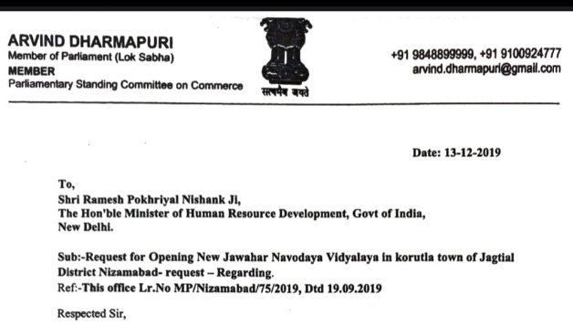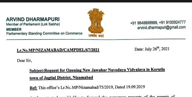 👉 ఎంపీ అభ్యర్థన మేరకే నిజామాబాద్ కు నవోదయ మంజూరు !