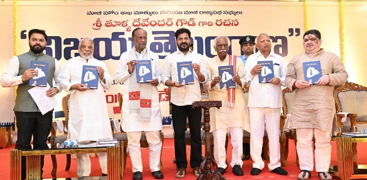 👉 మలి దశ ఉద్యమంలో కీలకంగా వ్యవహరించిన తెలంగాణ యోధుడు, మాజీ మంత్రి తూళ్ల దేవేందర్ గౌడ్ రచించిన ‘విజయ తెలంగాణ’ పుస్తకాన్ని ముఖ్యమంత్రి రేవంత్ రెడ్డి ఆవిష్కరించారు. హర్యానా గవర్నర్ బండారు దత్తాత్రేయ, మంత్రి పొన్నం ప్రభాకర్ , రాజ్యసభ సభ్యులు డాక్టర్ కె.లక్ష్మణ్ , ప్రభుత్వ సలహాదారు కే.కేశవరావు తో కలిసి పుస్తకాన్ని ఆవిష్కరించిన అనంతరం ముఖ్యమంత్రి ప్రసంగిస్తూ పలు అంశాలను ప్రస్తావించారు..