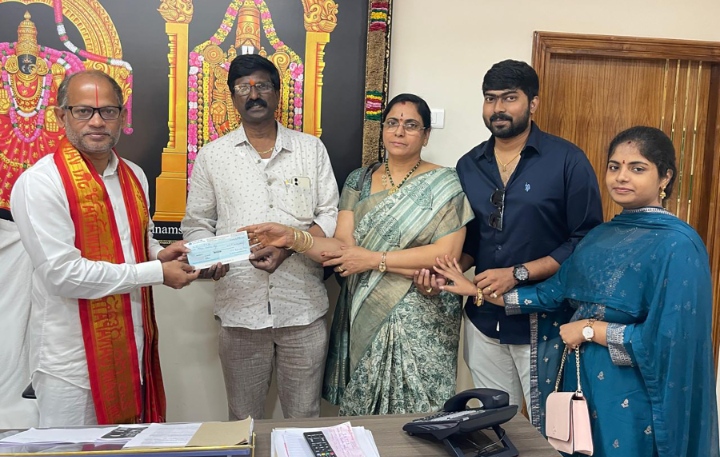 దాత అదే మొత్తానికి డిడిని తిరుమలలోని టిటిడి అదనపు ఈఓ సిహెచ్ వెంకయ్య చౌదరికి తన క్యాంప్ కార్యాలయంలో అందజేశారు.