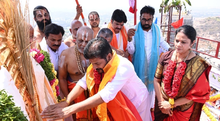 యాదగిరిగుట్ట శ్రీ లక్ష్మీనరసింహ స్వామి నీ సీఎం రేవంత్ రెడ్డి దంపతులు ఆదివారం దర్శించుకుని ఆలయ బంగారు విమాన గోపుర మహా కుంభాభిషేక సంప్రోక్షణ మహోత్సవంలో పాల్గొన్నారు. గోపురాన్ని స్వామివారికి అంకితం చేశారు. ఆగమ శాస్త్రం ప్రకారం వేదపండితులు నిర్ణయించిన సుమూర్తాన మహా కుంభాభిషేక సంప్రోక్షణ జరిగింది.