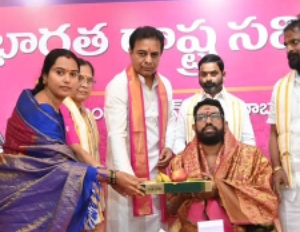 ఇద్దరు వేద పండితులు పంచాంగ శ్రవణంలో ఆయా అధికార, ప్రతిపక్ష పార్టీ అగ్ర నాయకులు సీఎం రేవంత్ రెడ్డికి, టిఆర్ఎస్ పార్టీ వర్కింగ్ ప్రెసిడెంట్ కేటీ రామారావుకు ఈ సంవత్సరం వార ఫలాల ఫలితాలు వివరించింది ఇద్దరు ఒకే క్షేత్ర వాసులు.