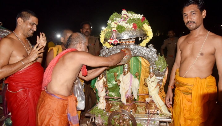 బుధవారం సాయంత్రం శ్రీ లక్ష్మీ నరసింహ స్వామి, వెంకటేశ్వర స్వామి, శ్రీ రామలింగేశ్వర స్వామి వారి ఉత్సవ విగ్రహాలు. మూడు రథములపై ఉంచి ప్రత్యేక పూజలు చేశారు.