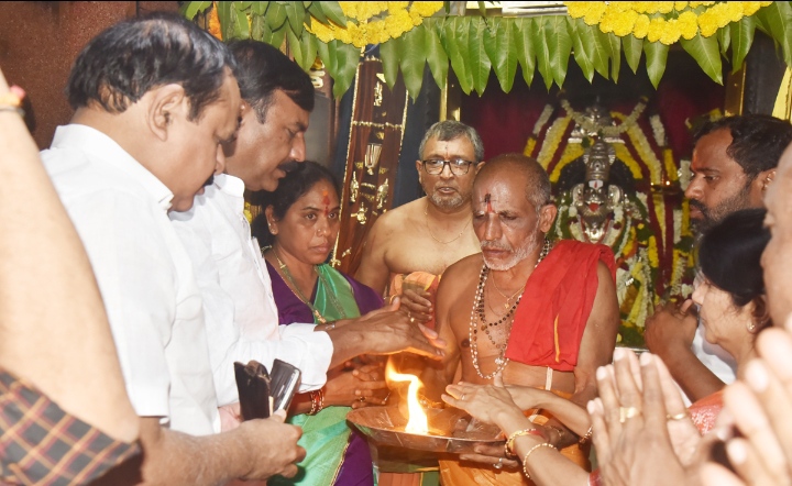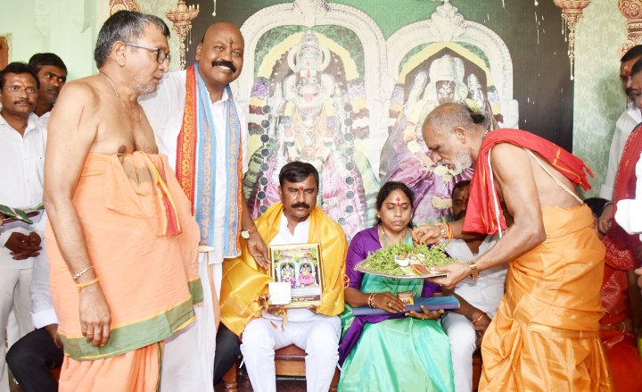 దర్శనానంతరం ధర్మకర్తల మండల అధ్యక్షుడు, అర్చకులు స్వామివారి తీర్థ ప్రసాదాలు అందించి స్వామి వారి శేష వస్త్రం బహుకరించి ఘనంగా ఆశీర్వదించారు.