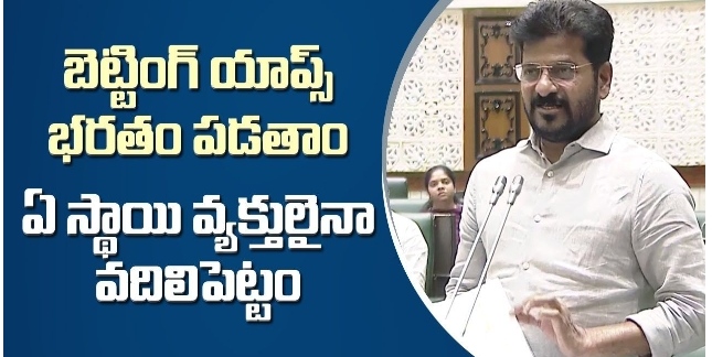 ఆన్లైన్ బెట్టింగ్ యాప్లను ప్రత్యక్షంగా నిర్వహించినా, పరోక్షంగా ప్రోత్సహించినా ప్రభుత్వం కఠిన చర్యలు తీసుకుంటూ ఉక్కు పాదంతో అణచివేస్తామని ముఖ్యమంత్రి ఎ.రేవంత్ రెడ్డి బుధవారం శాసనసభలో ప్రకటించారు. ఇలాంటి వాటిని నిరోధించడానికి, నిషేధించడానికి పూర్తి స్థాయి అధికారాలతో ప్రత్యేక దర్యాప్తు బృందాన్ని ఏర్పాటు చేస్తామని అన్నారు.