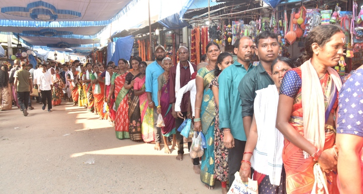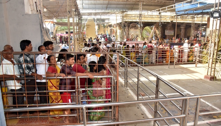 👉ఆలయం వద్ద బారులు తీరిన భక్తులు !