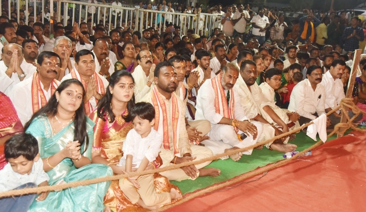 ధర్మపురి శ్రీ లక్ష్మీ నరసింహ స్వామి కళ్యాణ మహోత్సవం తిలకించడానికి తరలివచ్చిన వేలాదిమంది భక్తజనంతో మంగళవారం ధర్మపురి క్షేత్రం, కళ్యాణ మైదానం, పోటెత్తింది.