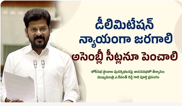 నియోజకవర్గాల పునర్విభజన ప్రక్రియలో లోక్సభ సీట్ల సంఖ్యను యథాతథంగా కొనసాగించడంతో పాటు రాష్ట్రాన్ని యూనిట్గా తీసుకుని ప్రస్తుత సరిహద్దులను మార్పు చేయాలని కోరుతూ సభా నాయకుడు, ముఖ్యమంత్రి రేవంత్ రెడ్డి గురువారం ప్రవేశపెట్టిన తీర్మానాన్ని శాసనసభ ఏకగ్రీవంగా ఆమోదించింది.