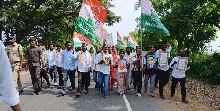 జై బాపు- జై భీమ్ -జై సంవిధాన్ పాదయాత్రలో భాగంగా శుక్రవారం ఎండపెల్లి మండలం ఎండపెల్లి నుండి రాజారాంపల్లి చౌరస్తా వరకు నిర్వహించిన పాదయాత్రలో ఎమ్మెల్యే అడ్లూరి లక్ష్మణ్ కుమార్, ఇంచార్జి, రాష్ట్ర గ్రంథాలయ చైర్మన్ రియాజ్ తో కలిసి పాల్గొన్నారు.