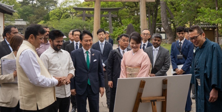 ప్రఖ్యాత కిటాక్యూషు నగరంలో ముఖ్యమంత్రి రేవంత్ రెడ్డి సారథ్యంలోని తెలంగాణ రైజింగ్ బృందానికి స్థానిక జపనీస్ సాంప్రదాయ రీతిలో సాదర స్వాగతం లభించింది. ముఖ్యమంత్రి తో పాటు ఐటీ, పరిశ్రమల శాఖ మంత్రి దుద్దిళ్ల శ్రీధర్ బాబు , రాష్ట్ర అధికారులకు కిటాక్యూషు నగర మేయర్ కజుహిసా టకేచీ ఆత్మీయ స్వాగతం పలికారు.