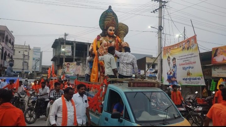 గురువారం రోజున సాయంత్రం స్థానిక శివాజీ విగ్రహం వద్ద విశ్వహిందూ పరిషత్, బజరంగ్ దళ్ ఆధ్వర్యంలో వీర హనుమాన్ విజయ యాత్ర నిర్వహించారు.